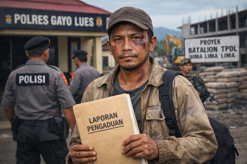 GAYO LUES | Rencana pelaporan dugaan penganiayaan dan penguasaan barang tanpa hak di lingkungan proyek pembangunan Komplek Batalion TP 855, Gayo Lues, mulai mencuat ke permukaan. Syahadat Saufi, seorang petani yang menjadi korban dalam peristiwa tersebut, menyatakan akan segera melaporkan kasus yang dialaminya ke Polres Gayo Lues. Langkah ini diambil setelah ia merasa hak-haknya sebagai warga telah dilanggar dan tidak mendapatkan perlakuan adil di lokasi proyek.