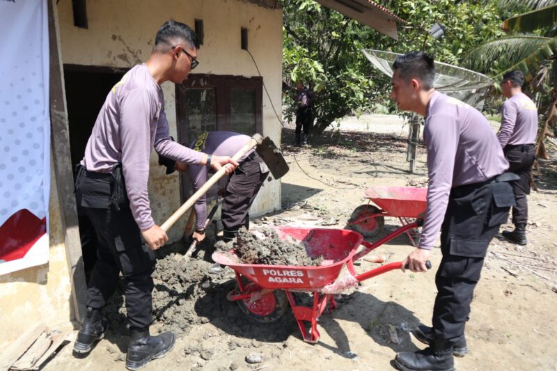 Dalam kegiatan itu, personel Polres Aceh Tenggara bersama mahasiswa STIK turun langsung membantu warga membersihkan bagian dalam maupun luar rumah. Mereka bergotong royong mengangkat lumpur, mencuci perabotan rumah tangga, hingga membersihkan halaman dan saluran air di sekitar pemukiman warga.